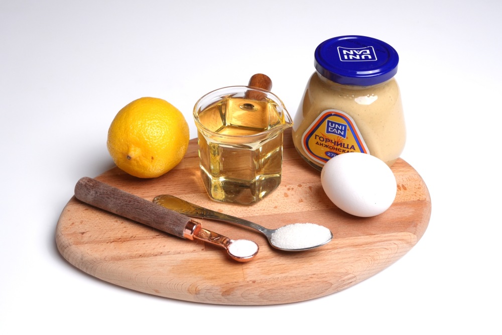 Подготовить все ингредиенты для самого вкусного и простого домашнего майонеза, они должны быть комнатной температуры. Понадобится погружной блендер или блендер-измельчитель.