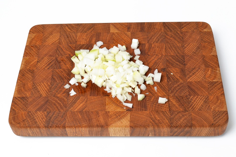 Мелко нарезать лук.