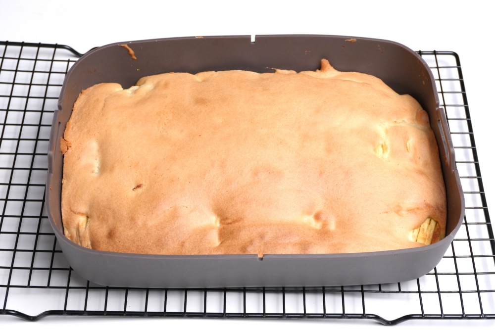 Переложите готовую шарлотку в форме на решетку, чтобы она остыла.