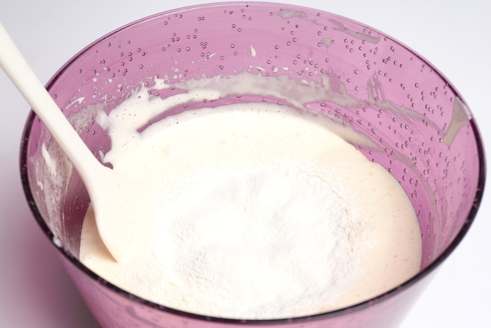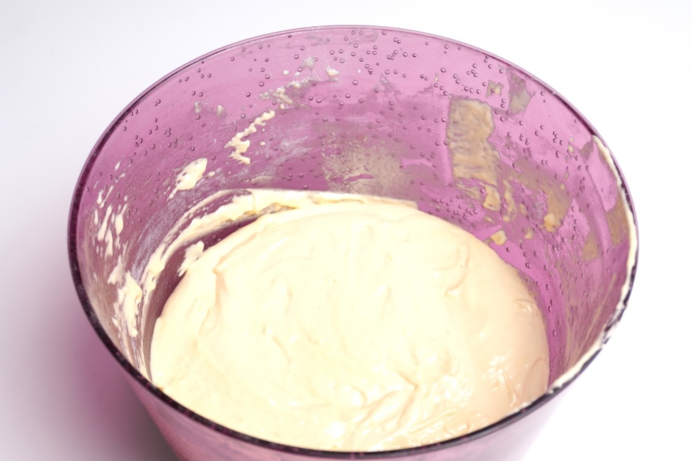 Тесто должно получиться густым, но при этом сохранить свою пышность и воздушность. Оставлять надолго в таком виде его не нужно, так как весь воздух успеет выйти.