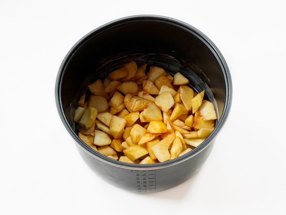 Следом выложить на него оставшиеся яблоки, распределяя их не слишком плотно.