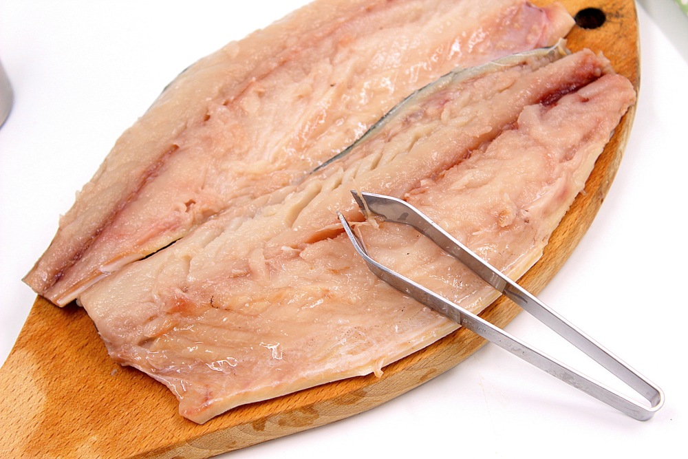 Провести пальцами по филе и с помощью пинцета выбрать оставшиеся косточки.