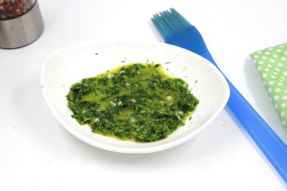 В рецепте дан вес чистых зеленых листиков, без стебельков, которые в этом соусе не используются. Ну разве что только коротенькие, молодые и нежные. Часть петрушки беру в замороженном виде. Просто еще не сезон и замороженная для соуса тоже отлично подходит.