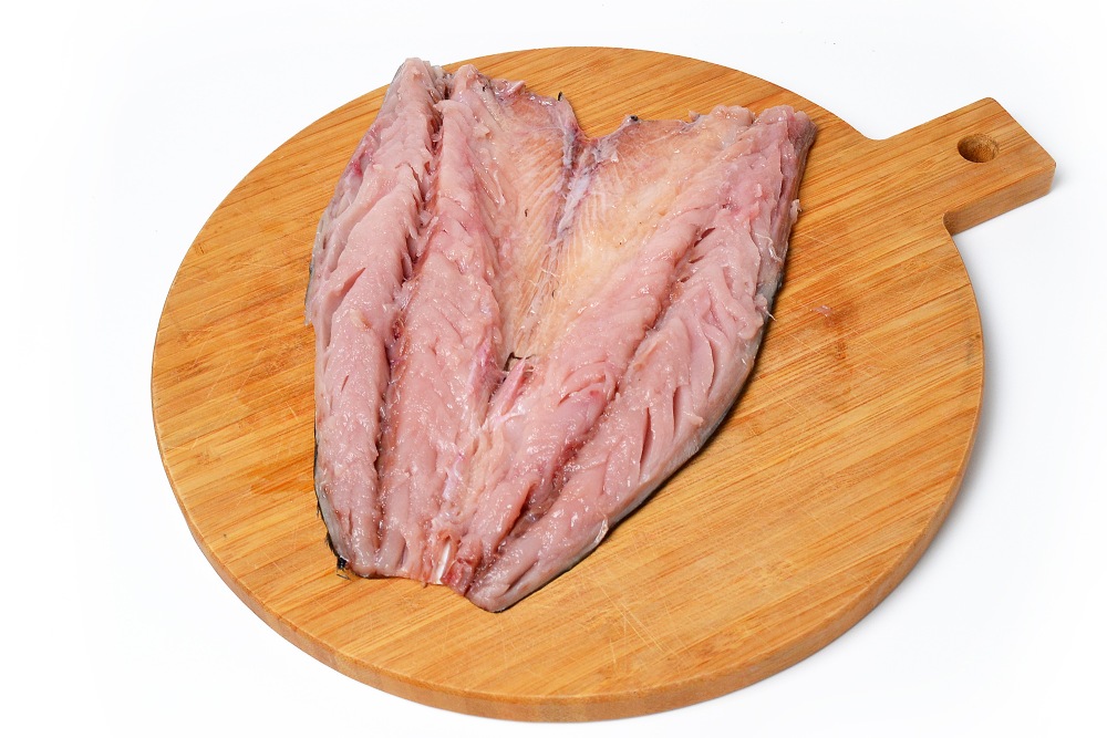 Разрезать рыбу вдоль позвоночника, вырезать хребет и крупные кости, удалить внутренности и срезать плавники.
