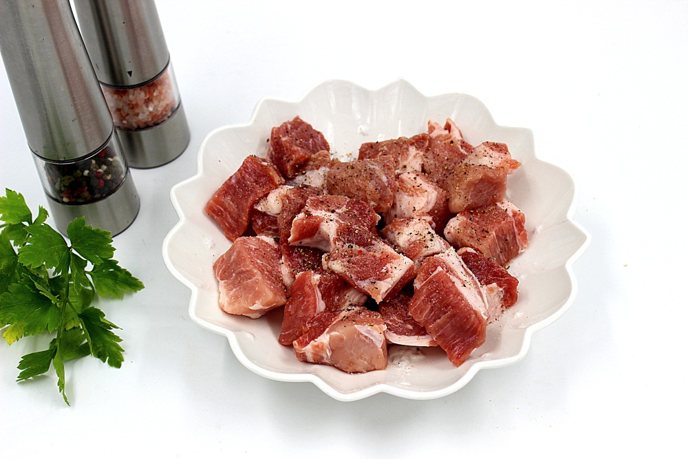 - На мой взгляд для жарки лучше всего подходит свиная шейка, которую я и использую, либо беру лопатку. Она тоже получается сочной. Конечно, можно говорить и о свиной вырезке и время приготовления в этом случае еще сократится, но она дороговата. Да и если вырезку пережарить, то на выходе большая вероятность получить сухое мясо.