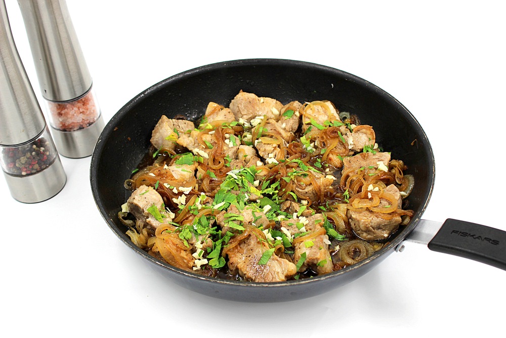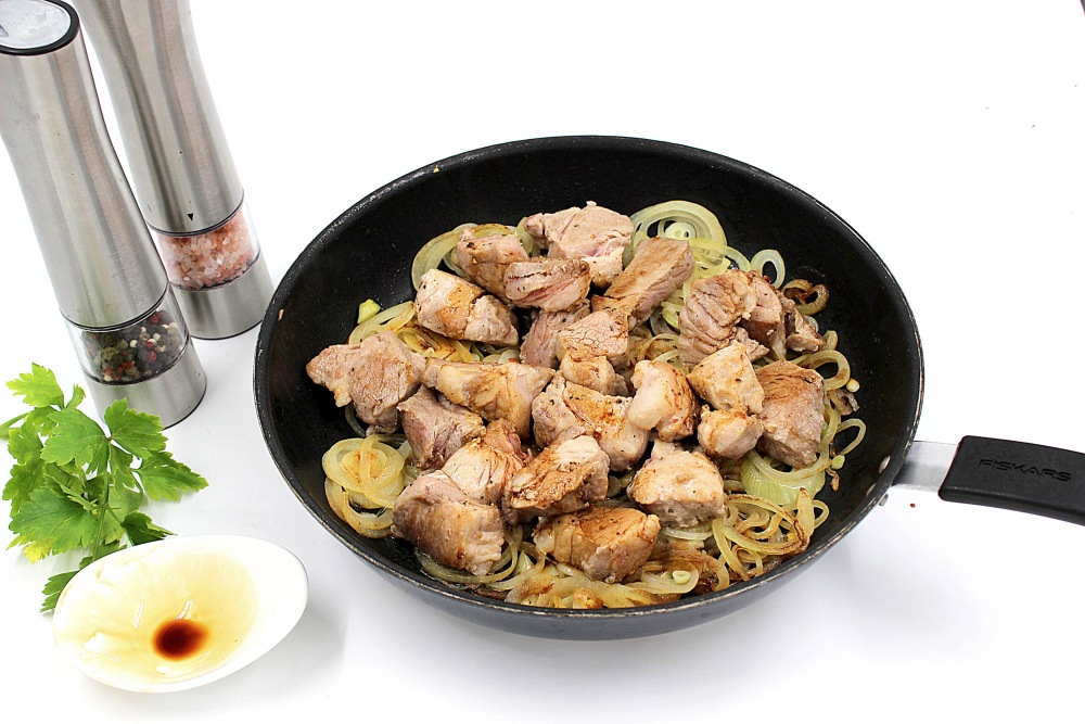 Сочная свинина на сковороде с луком