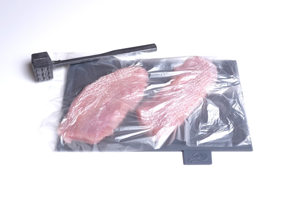 Для чего нужно отбивать мясо? Это делает мясо более сочным и мягким; размягчает волокна, что ускоряет процесс приготовления; позволяет специям и ароматам лучше проникнуть в мясо. Я советую накрывать мясо пленкой или пакетом, чтобы не пачкать молоток и чтобы куски мяса не разлетались.
