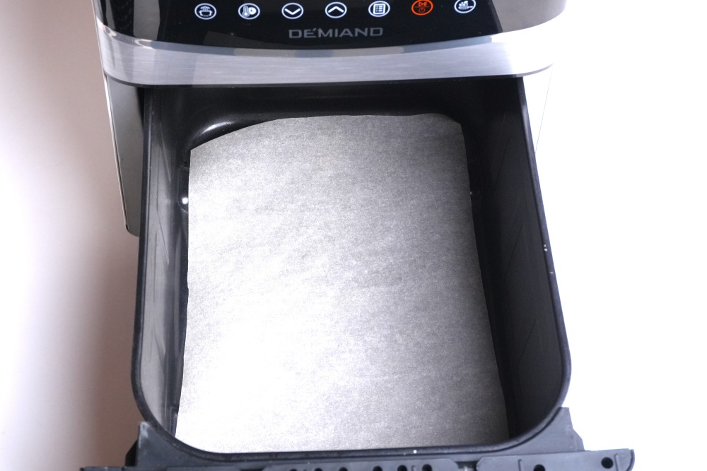 На дно аэрогриля выложить пергамент.