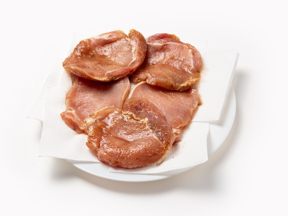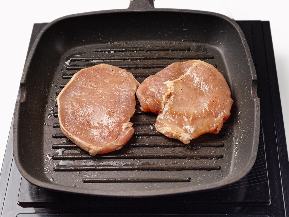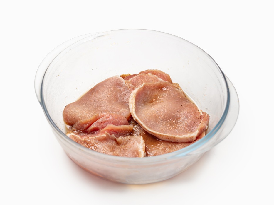 - Не обязательно мариновать часов: достаточно соли и перца с обеих сторон; можно добавить одну сухую смесь специй (для свинины или прованские травы) — и всё.