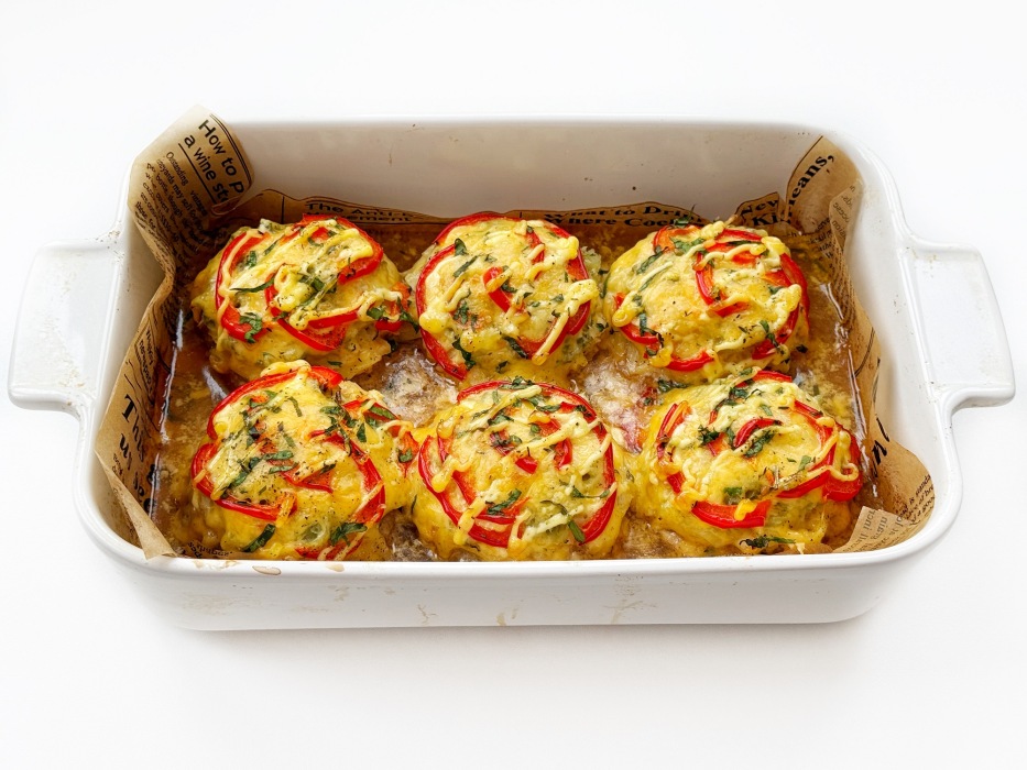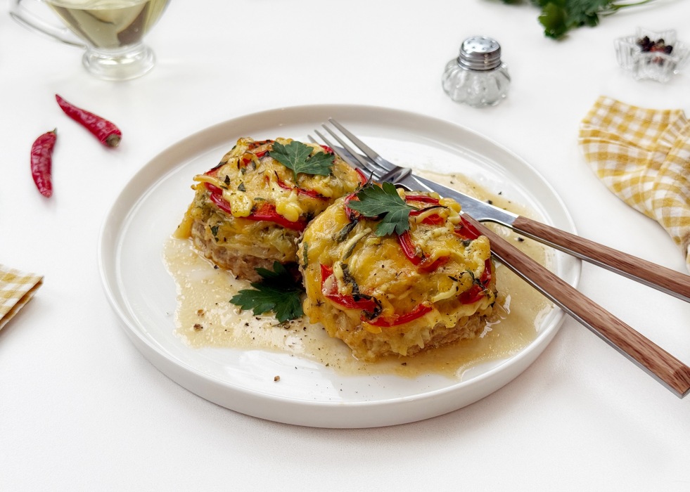 В итоге по вкусу это что-то среднее между домашней котлетой и запеченным мясом по-купечески, просто, вкусно и при этом эффектно. Такое блюдо легко подать как полноценный ужин без дополнительного гарнира. Удобное и вкусное решение, когда нужно накормить всю семью.