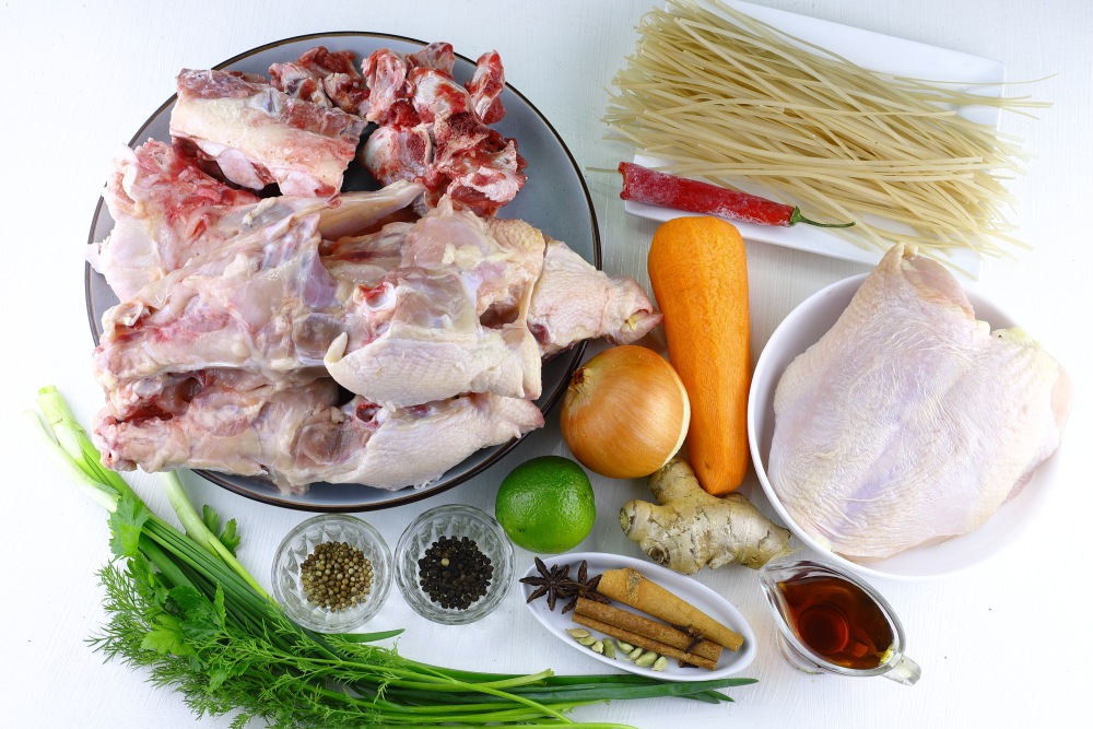 Подготовить необходимые ингредиенты для рецепта супа фо бо домашнего с курицей.