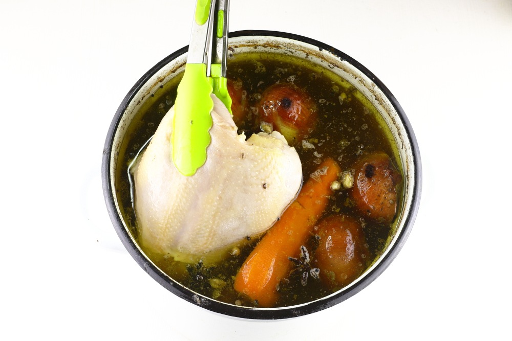 Регулярно нужно снимать пену шумовкой, чтобы бульон оставался чистым и прозрачным. Варить бульон в течение 3-4 часов, периодически проверяя уровень воды.