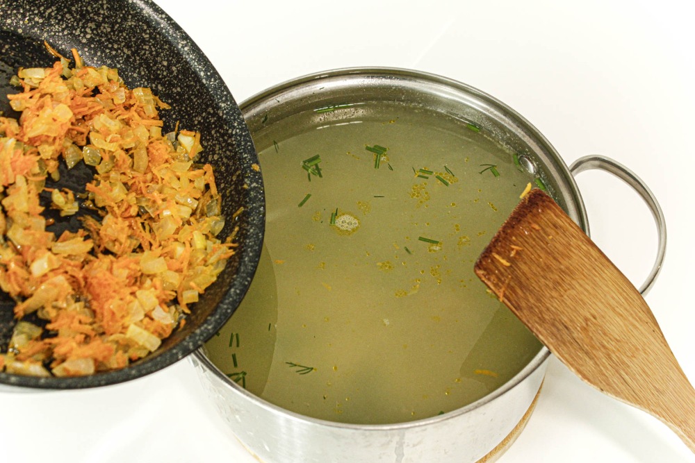 – Положите в бульон лавровый лист или немного корня сельдерея (если любите) — суп станет душистее и сложнее.
