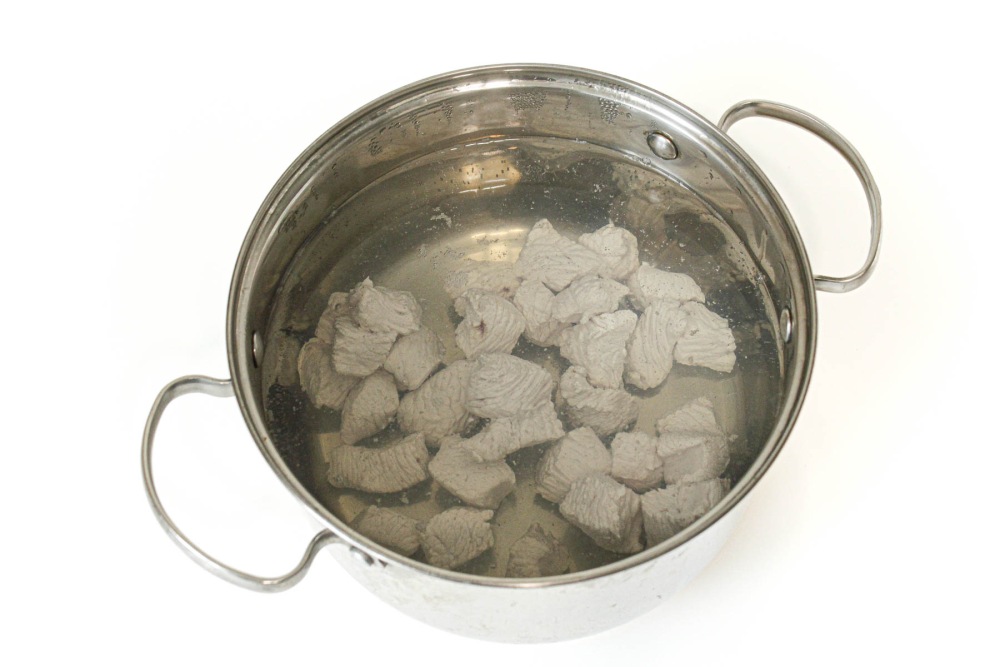 Вскипятить воду в кастрюле. Переложить мясо и варить в течении 20 минут.
