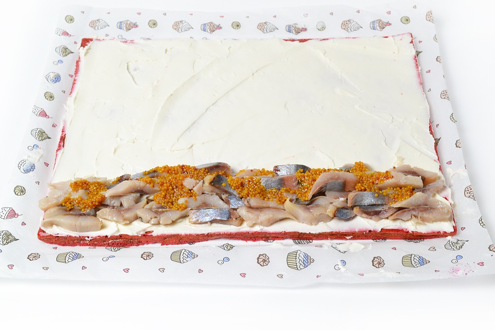 - Подробный пошаговый рецепт приготовления «Свекольный рулет с сельдью и творожным сыром праздничный» с фото