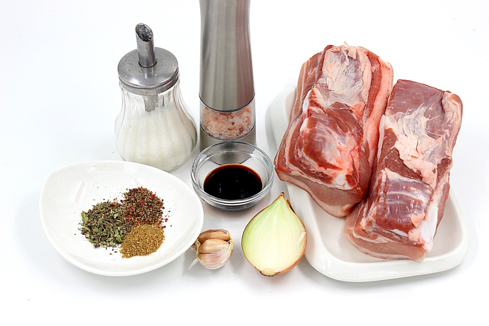Подготовить ингредиенты для свиной грудинки запеченная в духовке в фольге.