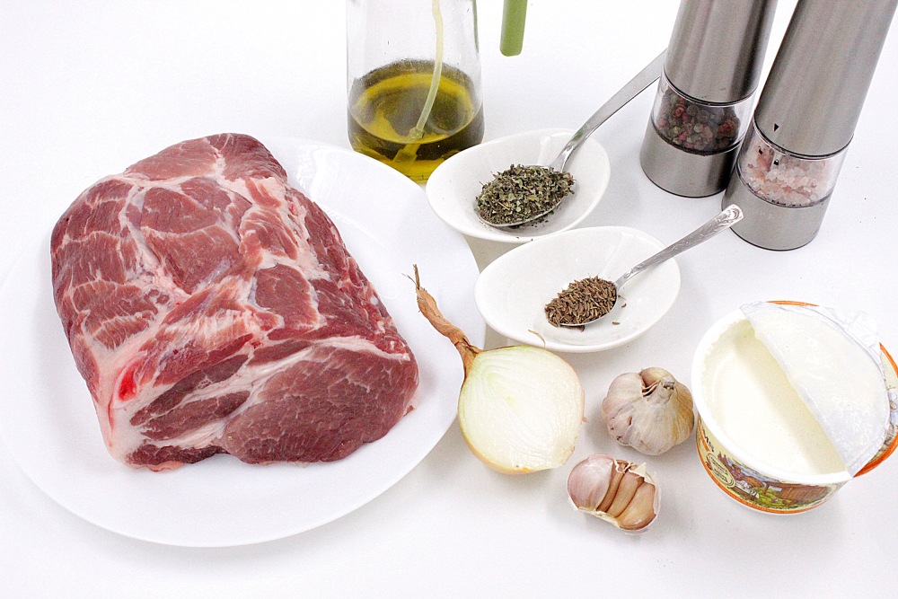 Подготовить все ингредиенты для свинины с чесноком в фольге на Новый год.