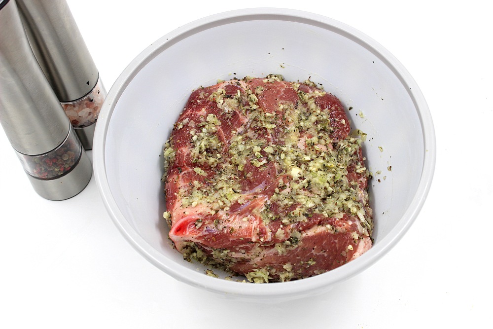 В дополнение к чесноку добавляем для аромата тмин и сухие травы, которые чудесно подходят свинине: тимьян, орегано и майоран. Совсем не обязательно слепо следовать рецепту. Хотите розмарин, кориандр, зернистую горчицу и мёд? Да, это тоже хорошие варианты. Вносите изменения по своему вкусу.