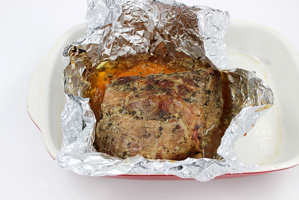 В такие большие, семейные праздники меньше всего хочется проводить время у плиты. Поэтому большой плюс, что свинину в фольге с чесноком можно приготовить заранее. После того, как она будет готова нужно слить образовавшуюся жидкость в пиалу, а мясо остудить, опять плотно завернуть и положить в холодильник. Три дня оно спокойно себе лежит, никому не мешает и ждёт своего часа. Ну а после просто подогреть.