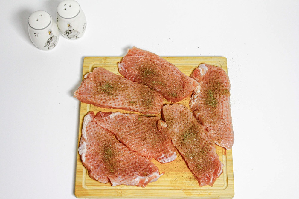 Отбить с двух сторон. Так выглядят готовые куски мяса.