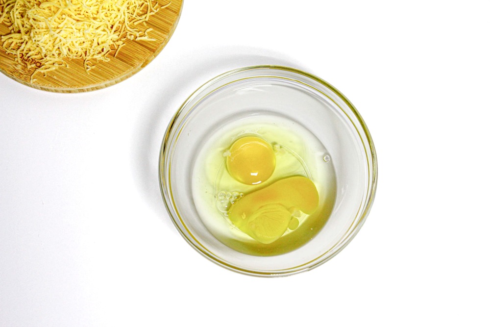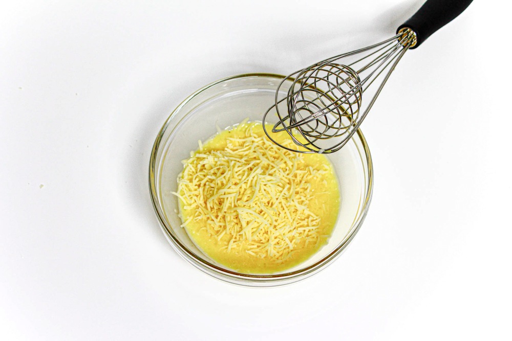 Добавить натёртый сыр к яичной смеси, перемешать.