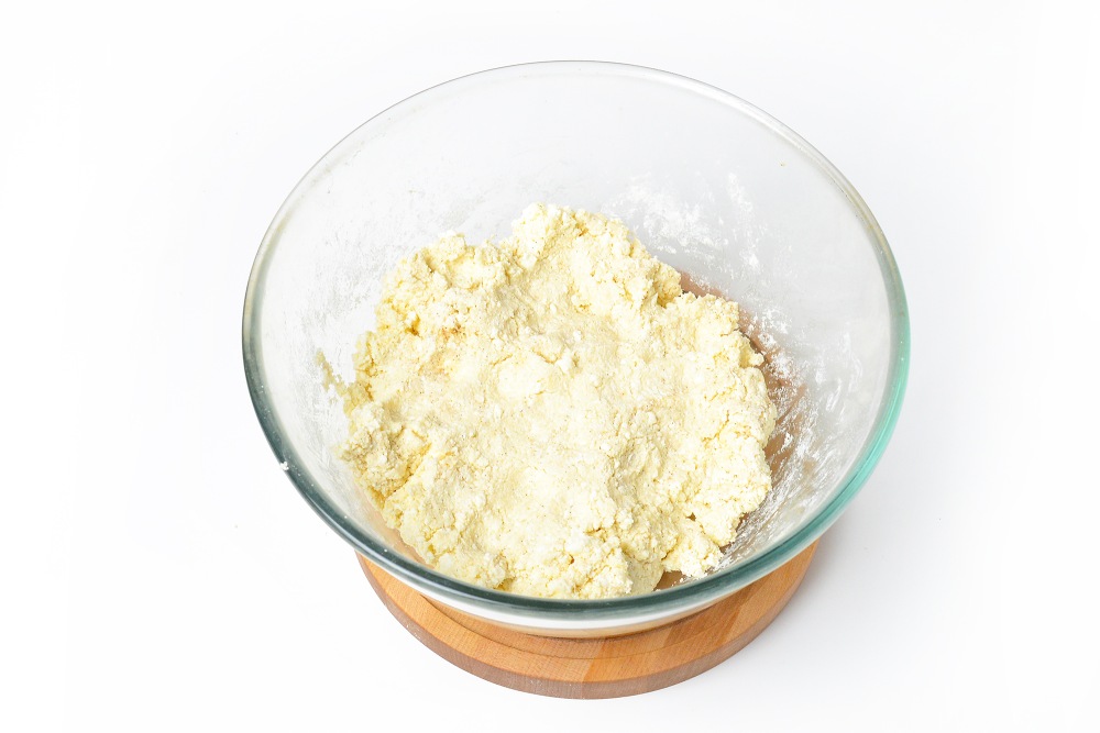Совет: ориентируйтесь на консистенцию при добавлении муки. Часть оставьте на обваливание сырников.