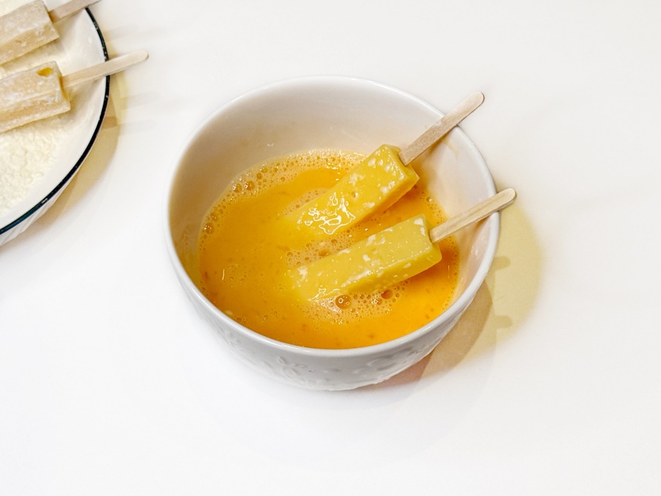 -Толщина нарезки палочки имеет значение. Если сыр нарезать слишком тонко, он расплавится быстрее, чем «успеет» подрумяниться панировка. Оптимальная толщина около 1–1,5 см.