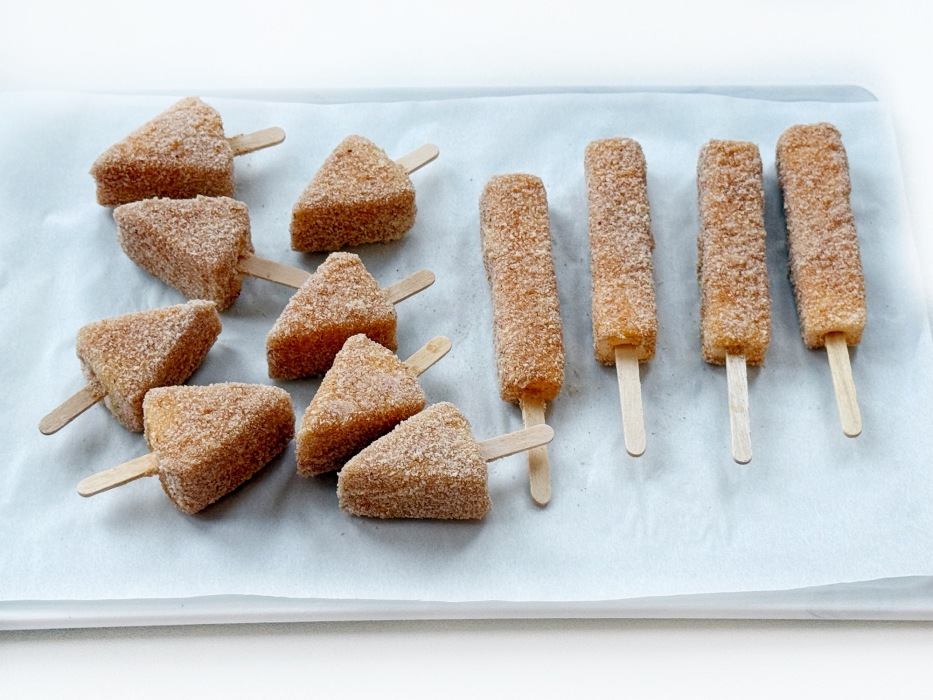 Запанированные палочки выложить на доску с пергаментом и убрать в морозилку на 15 - 30 минут.
