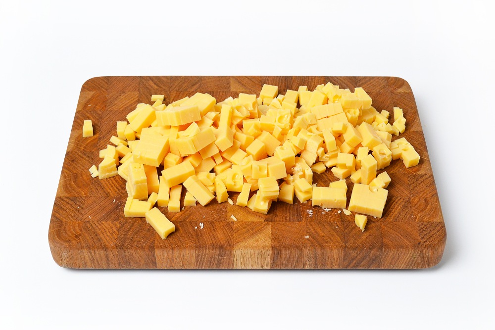 Сыр нарезать кубиком.