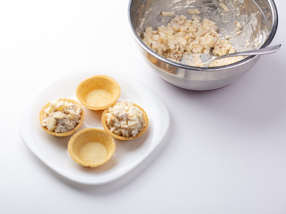 Тарталетки с сыром, курицей, ананасом и чесноком