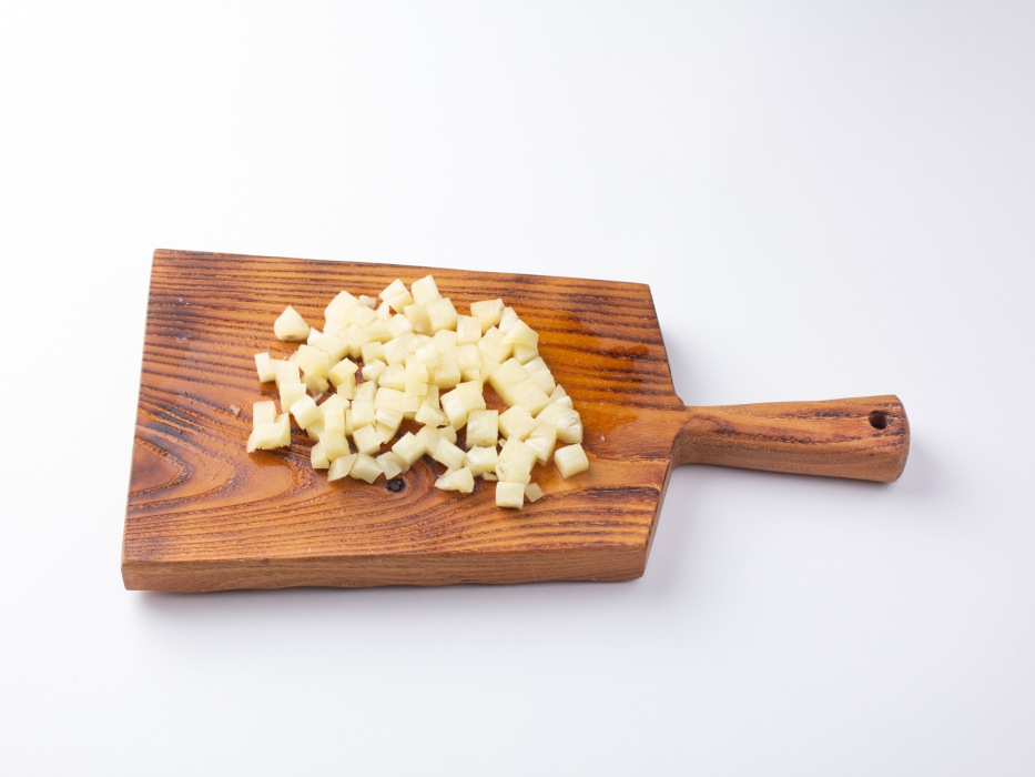 Нарезать ананас кубиками если вы используете для этого рецепта кольца ананаса.