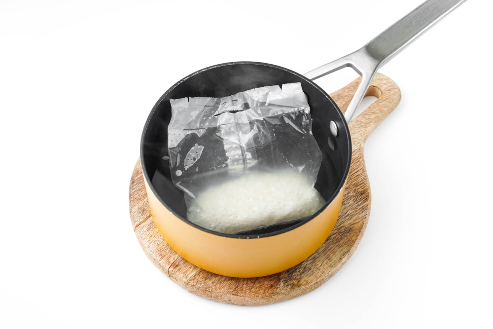 - Использовать готовый варёный рис или рис в пакетиках.