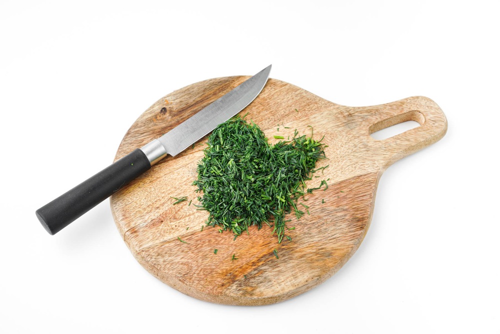 Мелко порубить зелень ножом.