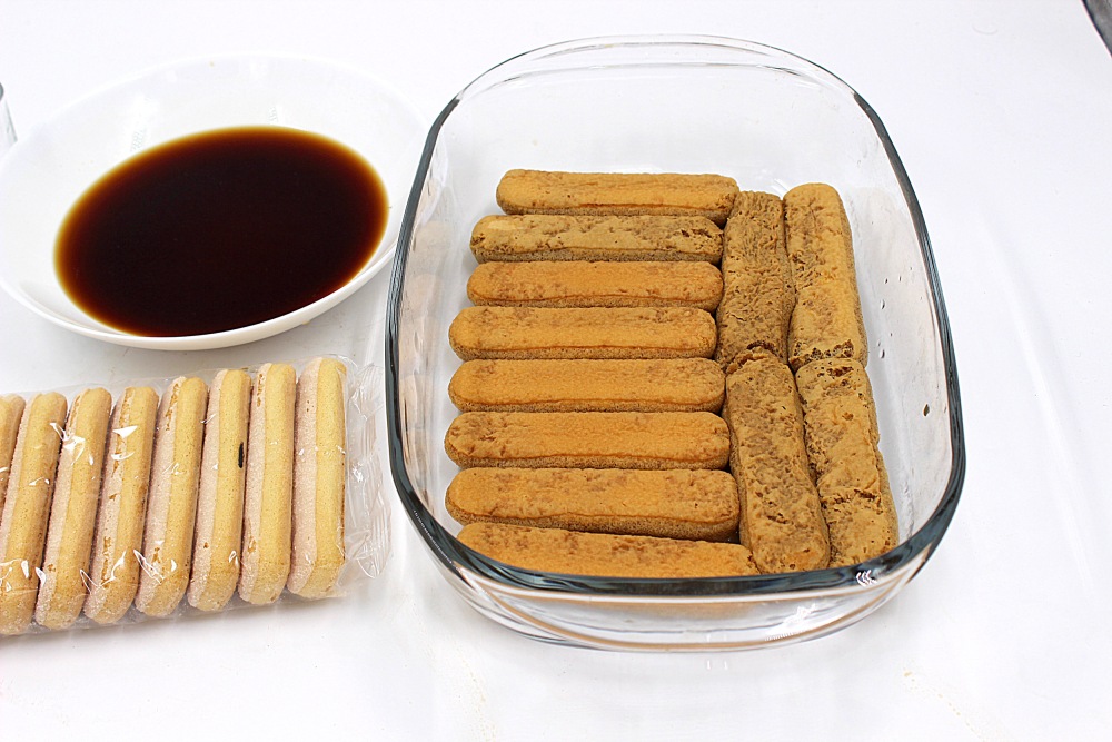 У меня 300 мл готового, довольно крепкого кофе. В наличии кофе машина. Делаю двойное американо+ двойной эспрессо. Маскарпоне лучше выложить заранее. Пусть он будет комнатной температуры. Если вы возьмете его 500 грамм, то просто крема получится чуть больше.