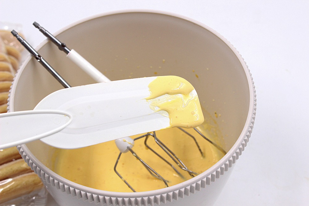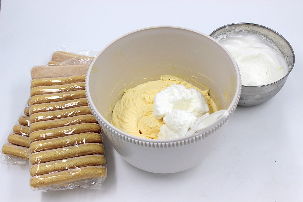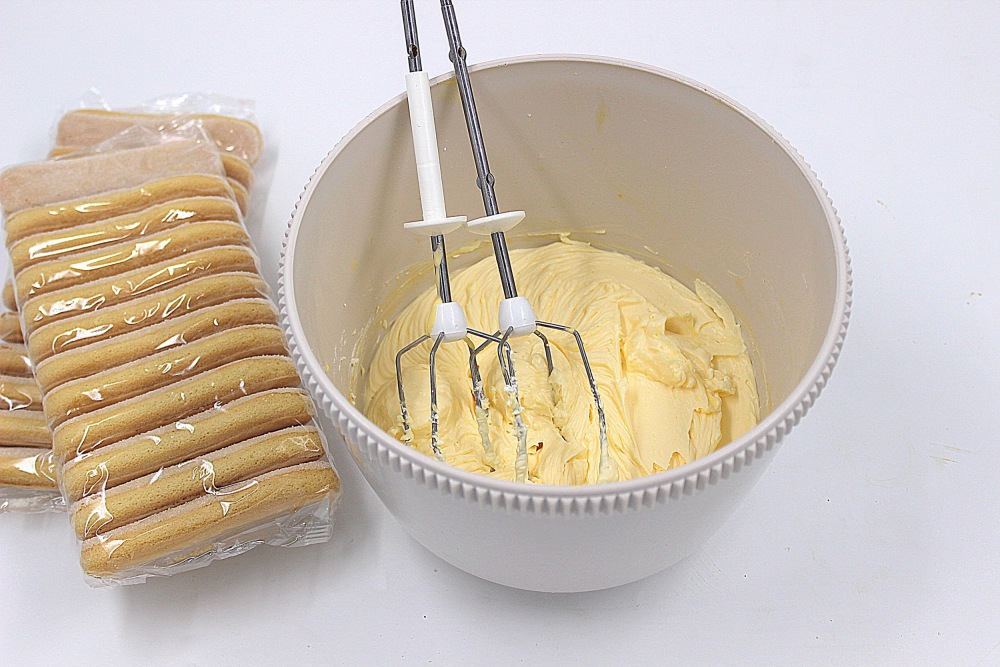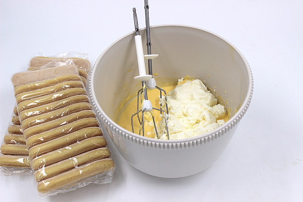 К взбитым желткам добавить маскарпоне.