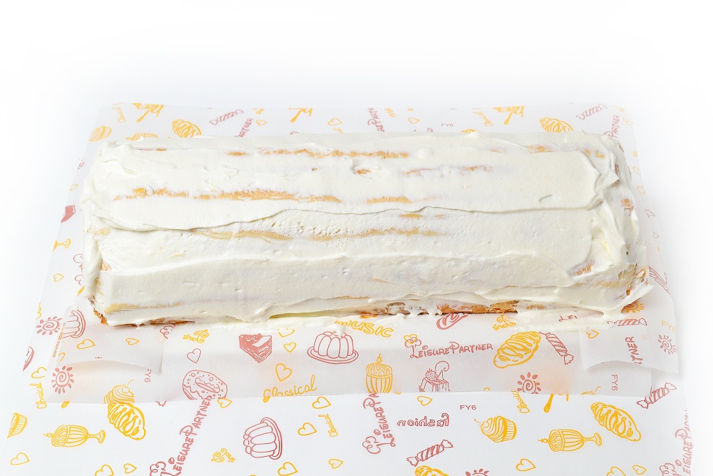 На стол выложить несколько слоев пищевой пленки. Смазать кремом.