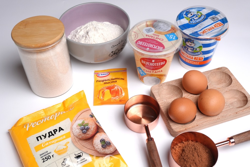 Подготовить все ингредиенты. Для теста яйца, масло, сметану нужно брать комнатной температуры.