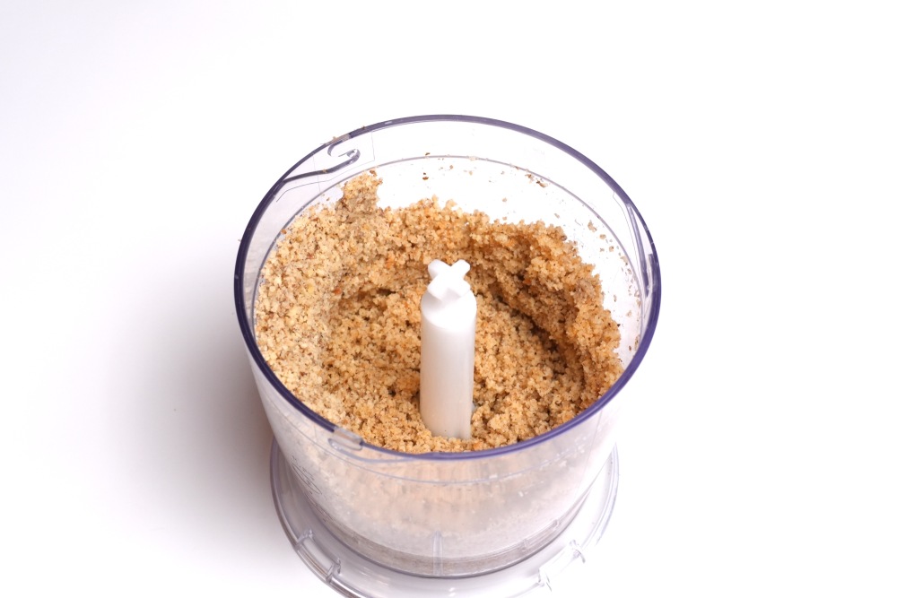 Для обсыпки обрезки от коржей измельчить блендером в крошку. Можно добавить орехи, чтобы посыпки получилось больше.