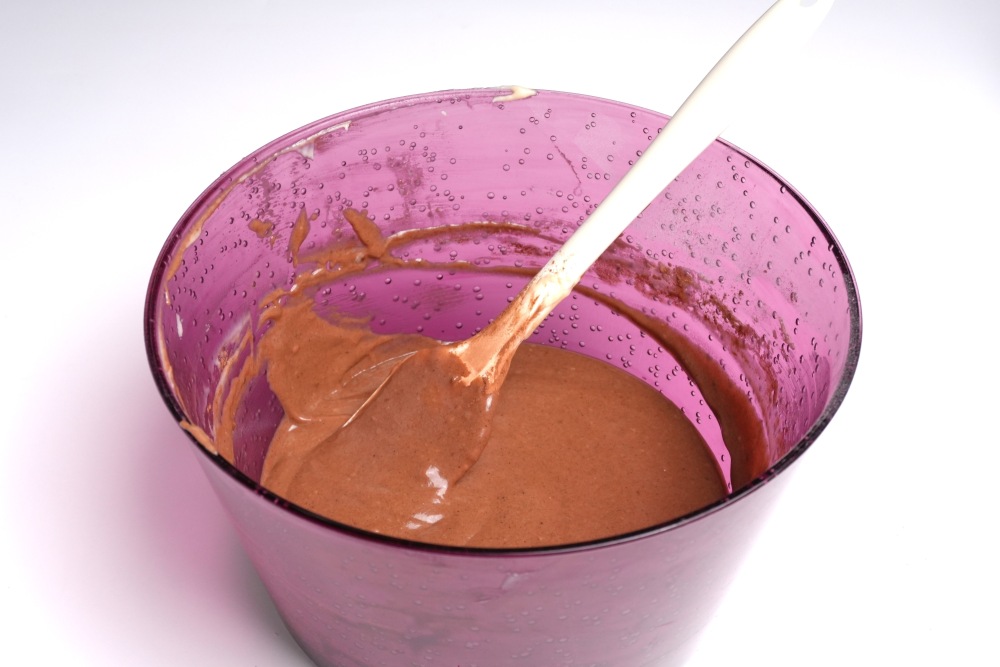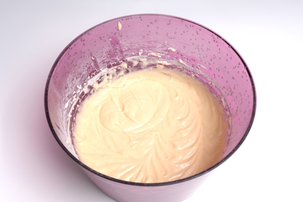 Добавить в яичную смесь сухие ингредиенты, быстро перемешать до однородности.