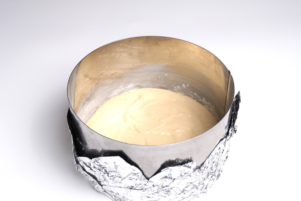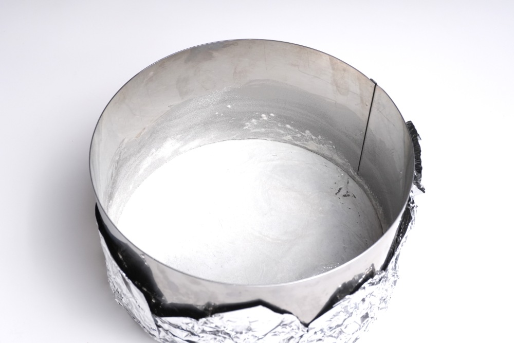 Подготовить формы для выпекания. У меня 2 металлических кольца, которые я обернула фольгой в 2 слоя. Можно использовать разъемные или силиконовые формы.