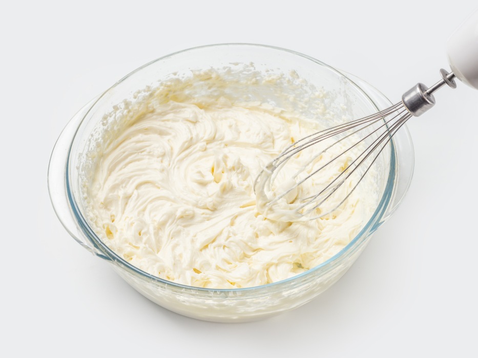 Не стоит слишком долго взбивать сливки и творожный сыр, иначе он не получится воздушным.