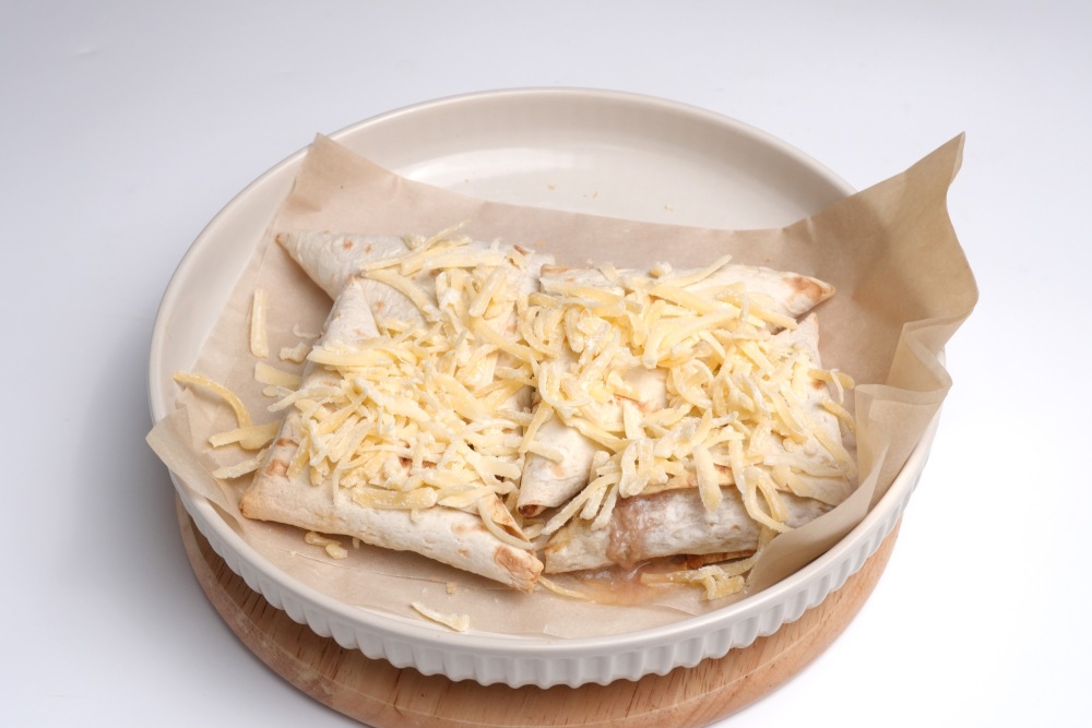 - Последний край лаваша при сворачивании можно смочить водой или яичным белком – он склеится надежнее, и начинка точно не вытечет.