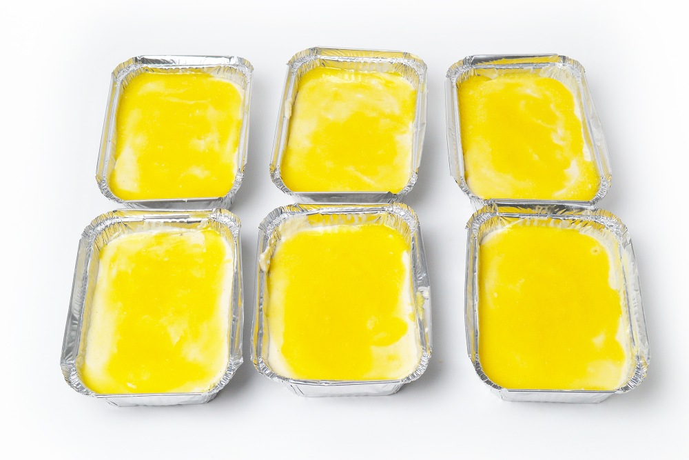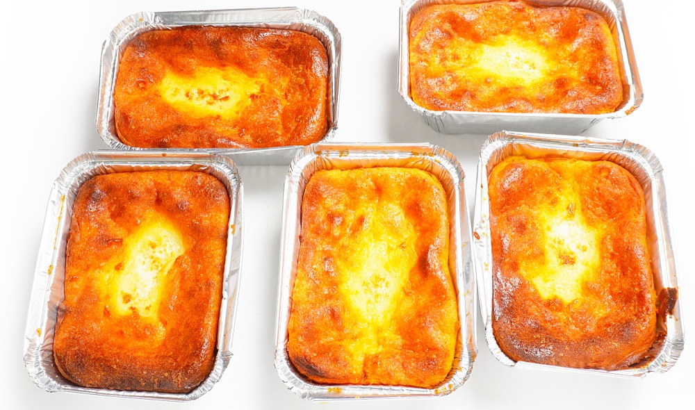 Сливочное масло не используется в тесте как таковом, но им смазываются формочки и заливается верх. За счет этого корочка получается менее сухой и более ароматной. Кстати, приготовить запеканку можно в алюминиевых формах порционно или в одной большой. Также можно использовать стеклянную или керамическую форму. Но перед заморозкой запеканку нужно извлечь, разделить на кусочки и только после этого упаковать в контейнеры, зип-пакеты или вакуумные рулоны.