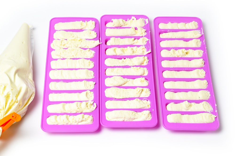 - Палочки можно приготовить без форм: сделайте тесто чуть плотнее, отсадите из мешка прямо на противень для заморозки и заморозьте.