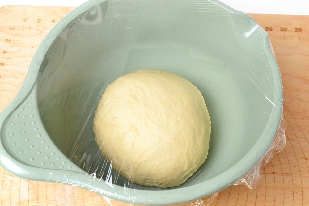Накрыть пленкой или пакетами, чтобы не обветрилось, и поставить в духовку. Включить лампочку и оставить тесто доходить до комнатной температуры как минимум на 2 часа.