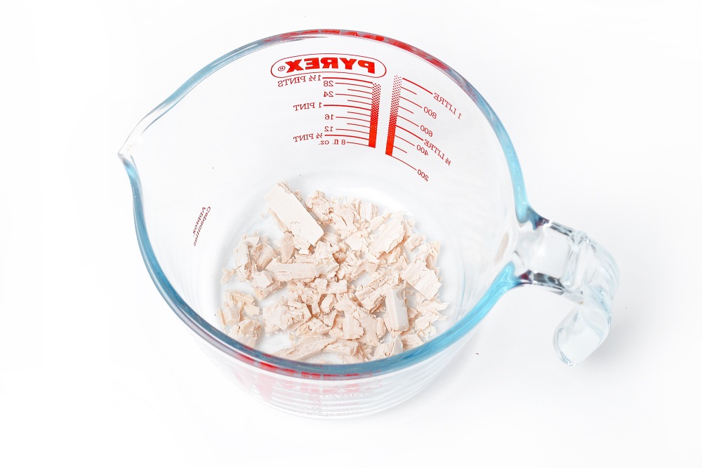 В емкость объемом 0,5-1 л или чуть меньше покрошить руками дрожжи.