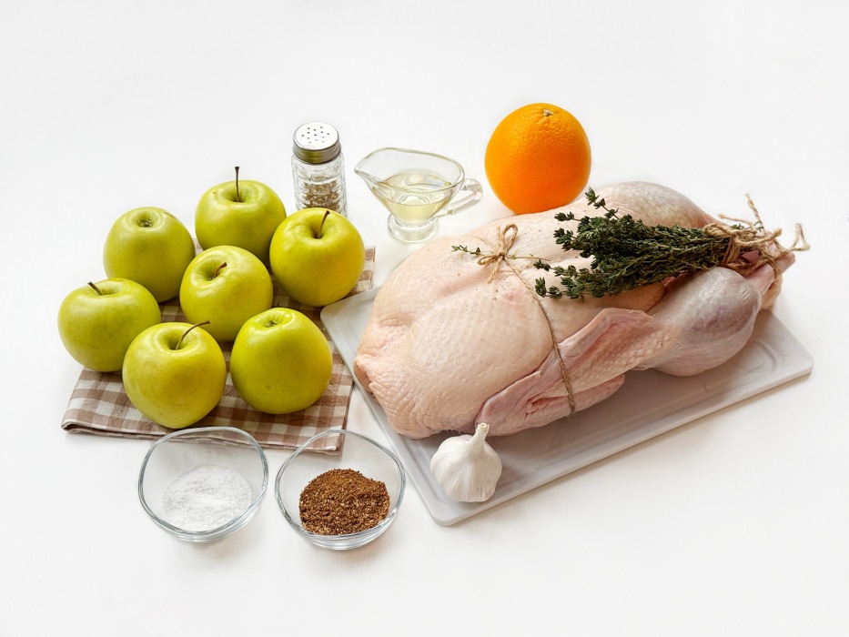 Подготовить ингредиенты для приготовления утки в яблоках на Новый год.