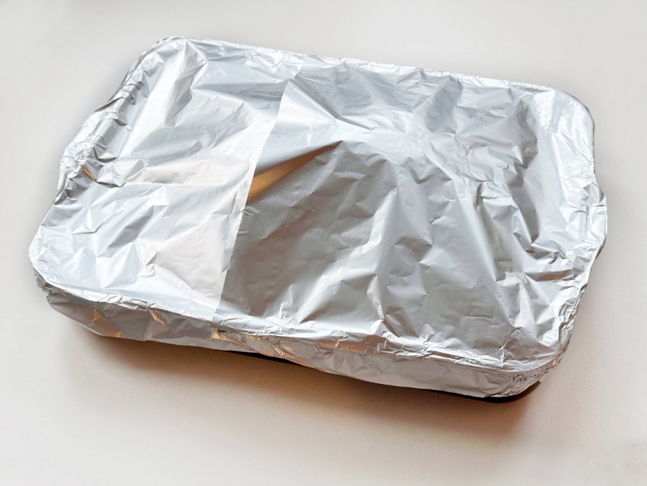 Влить в форму пол стакана воды или апельсинового сока. Укрыть фольгой.
