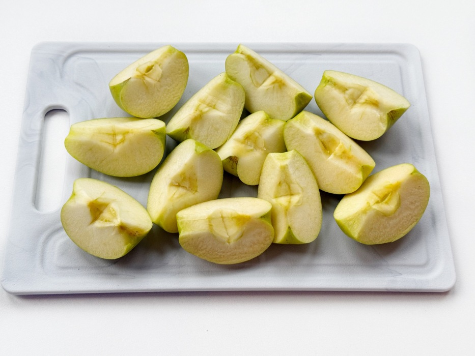 Сладкие яблоки использовать не рекомендуется.Яблоки нарезать крупными дольками, кожуру не снимать.