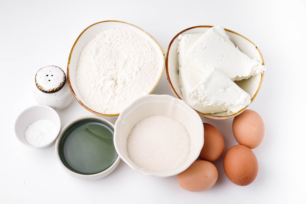 Подготовить ингредиенты для вафель из творога для заготовки в морозилку. Достать творог заранее, чтобы он стал мягче и легче перемешивался. Выбрать творог жирностью не менее 5%, чтобы вафли получились нежными и не сухими. Подготовить яйца, муку, сахар и масло, а также проверить, чтобы все продукты были свежими.